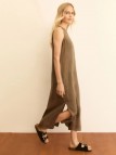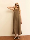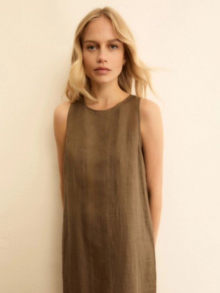 Summer essential: nuovo abito in puro lino lavato, con linea dritta sul busto e spacchi profondi laterali. Da declinare nelle nuance vitaminiche, per un nuovo stile urbano.