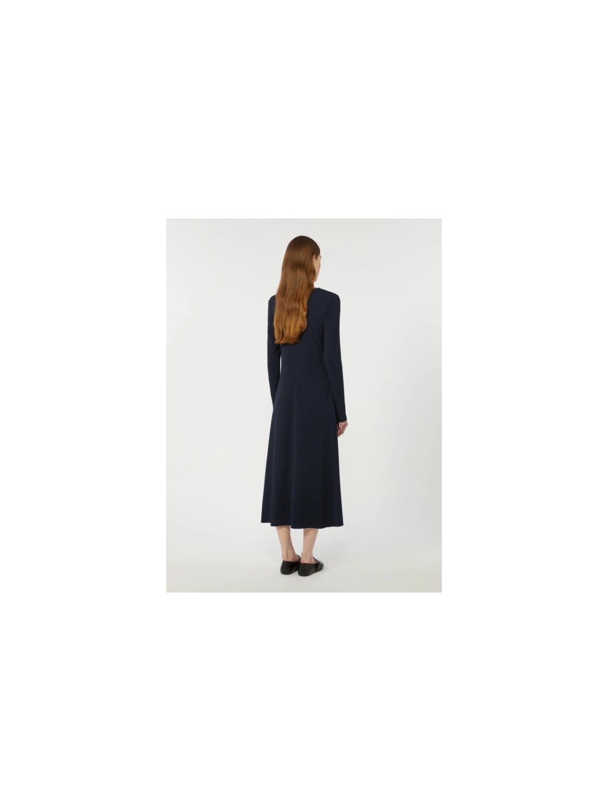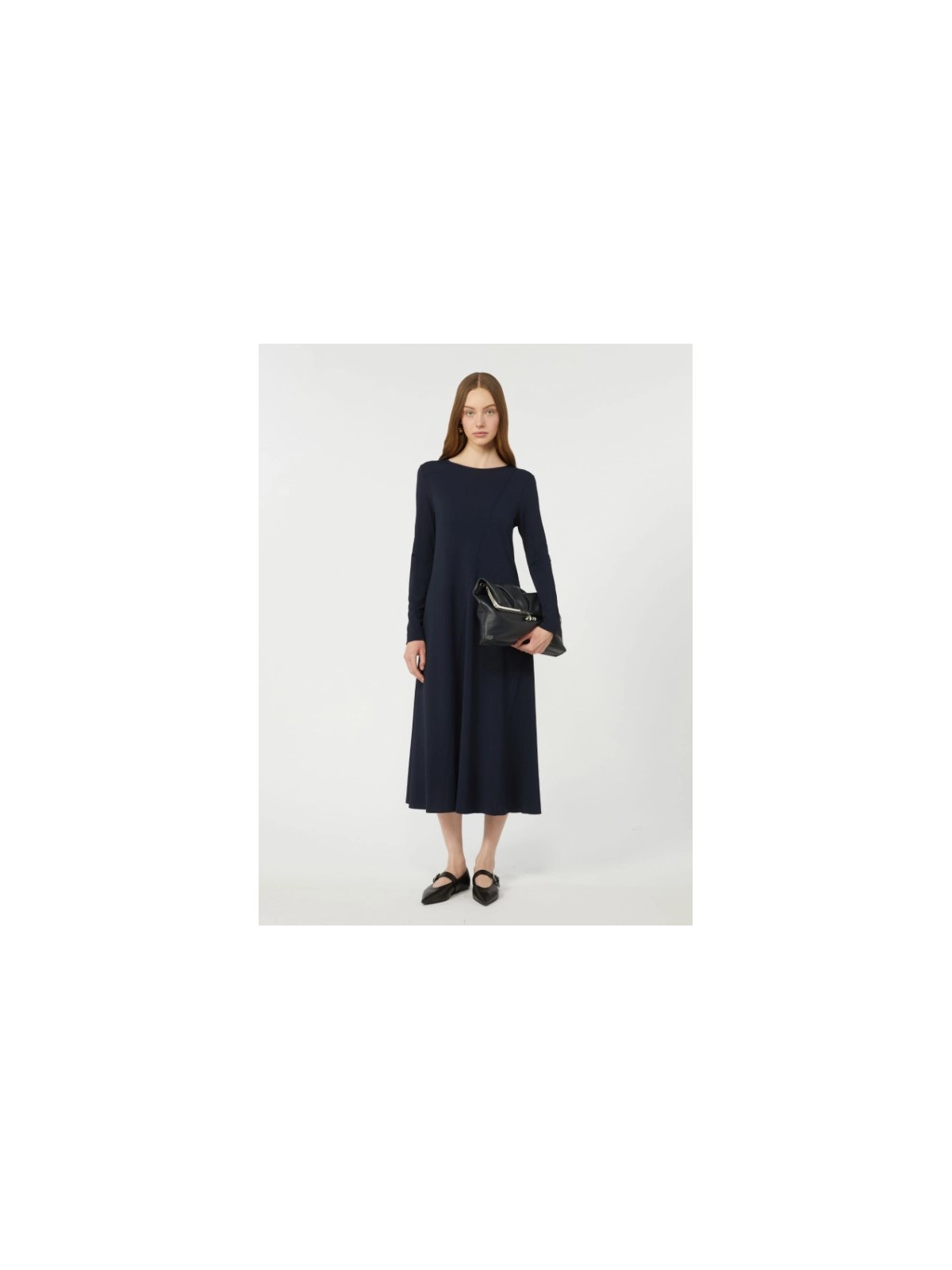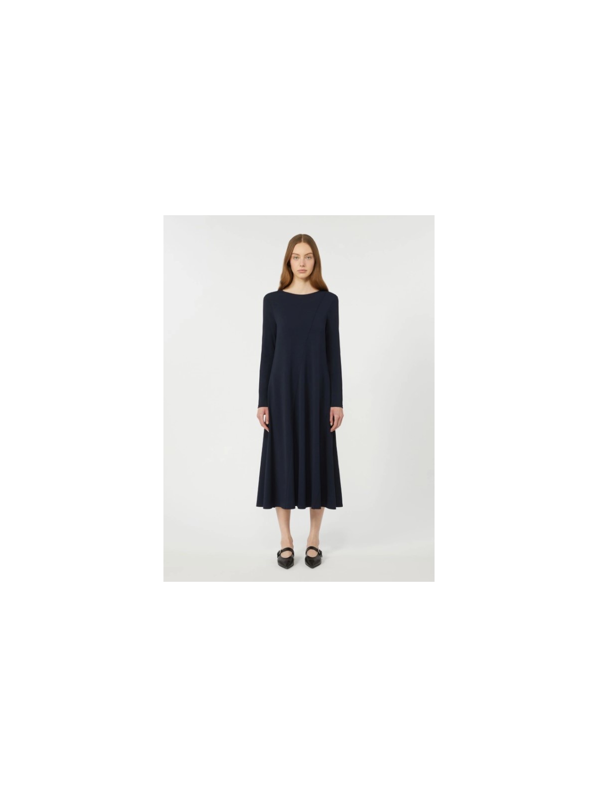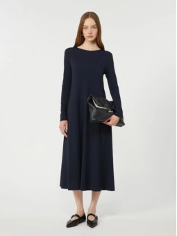 Abito lungo dalla silhouette sfiancata e svasata al fondo.