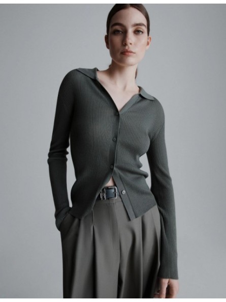 - Cardigan in filato di pura lana super light con lavorazione a coste