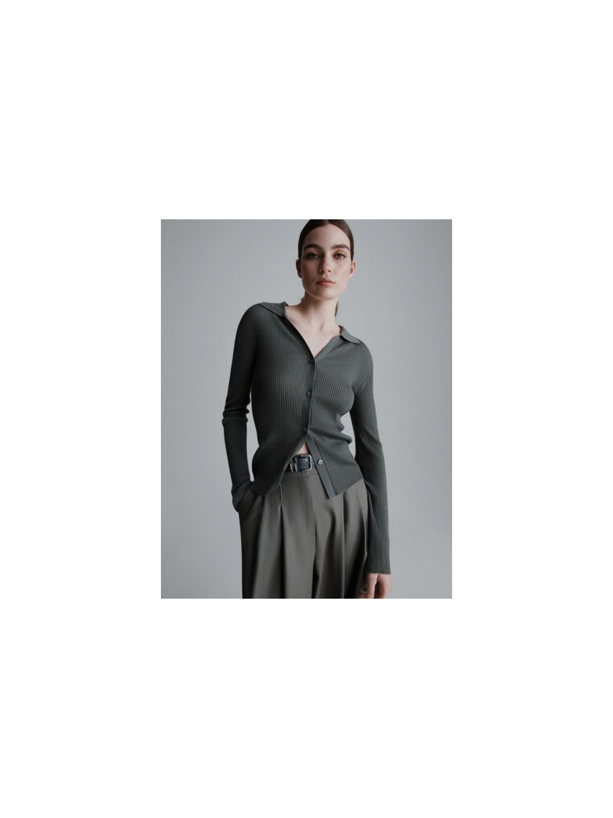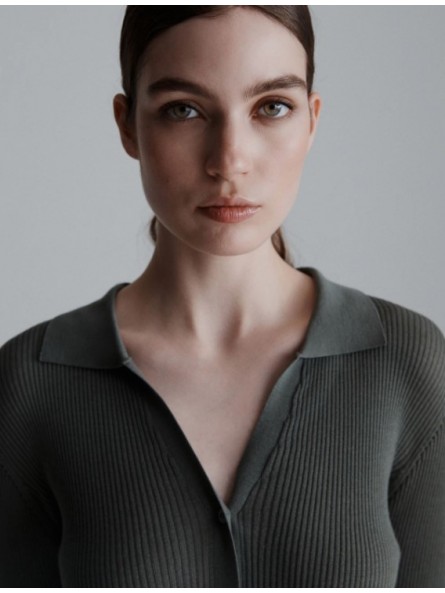 Aderente per una silhouette in evidenza, il cardigan si fa protagonista dei look invernali. Lavorazione a coste e bottoni personalizzati per un abbinarsi a pantaloni wide leg, in un gioco di volumi a contrasto.