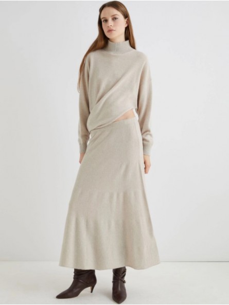 Calda e avvolgente, la longuette in misto cashmere è una vera coccola per la stagione fredda. Con cintura elastica per il massimo comfort, si indossa con una maglia e gli stivali, in un perfetto city look.
