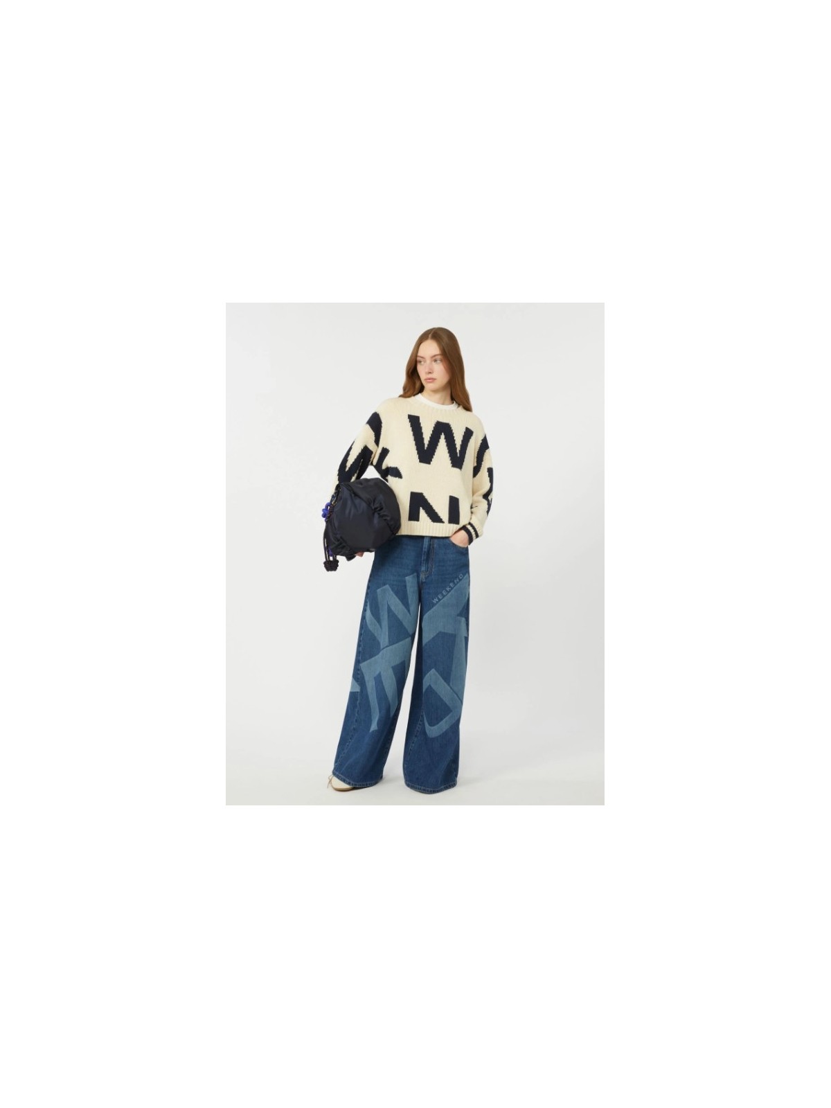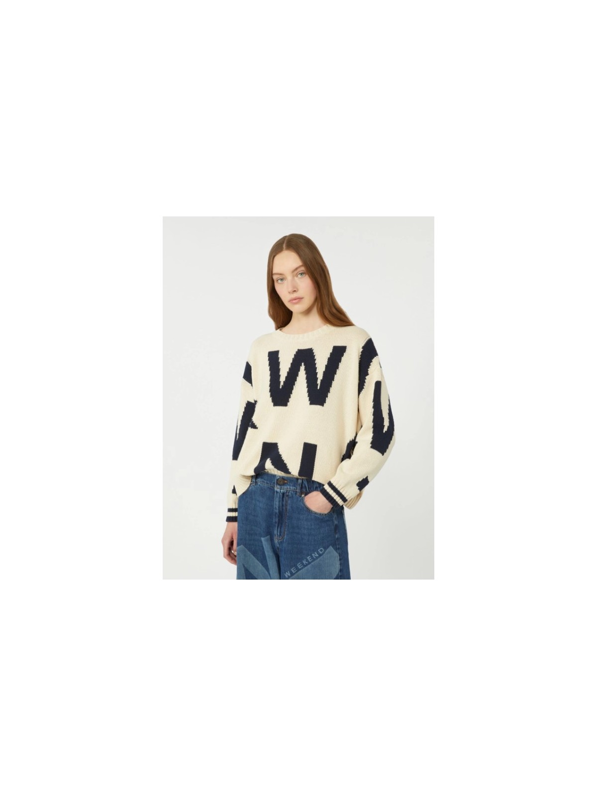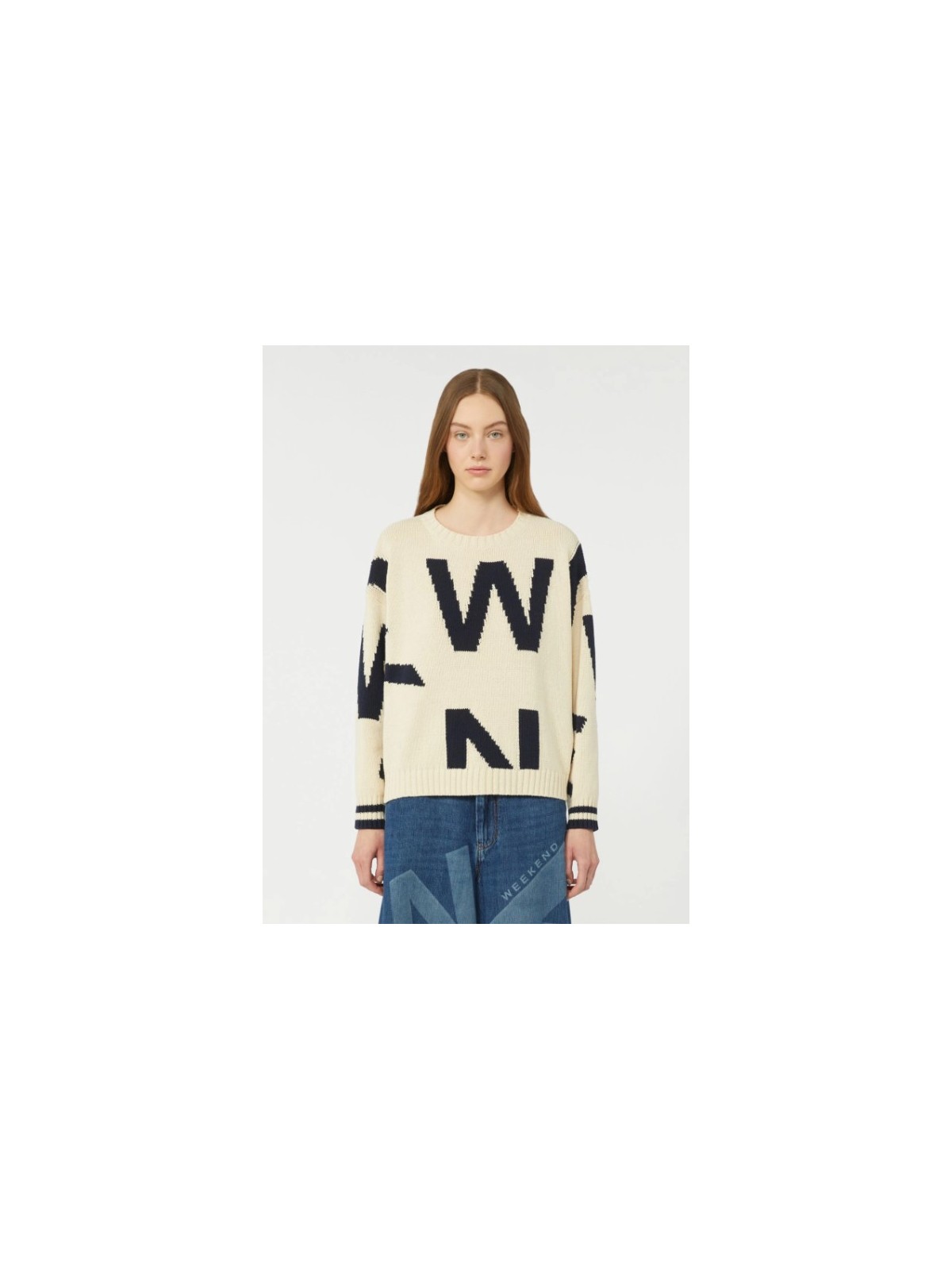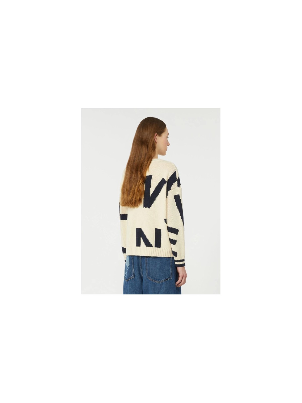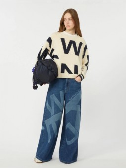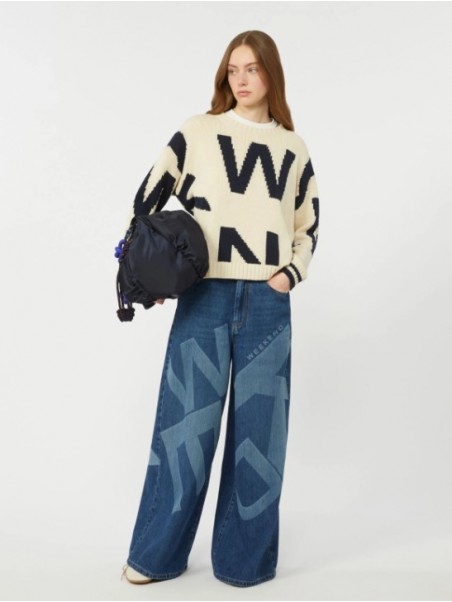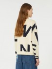 Maglia girocollo, personalizzata con motivo fantasia intarsiato all over.