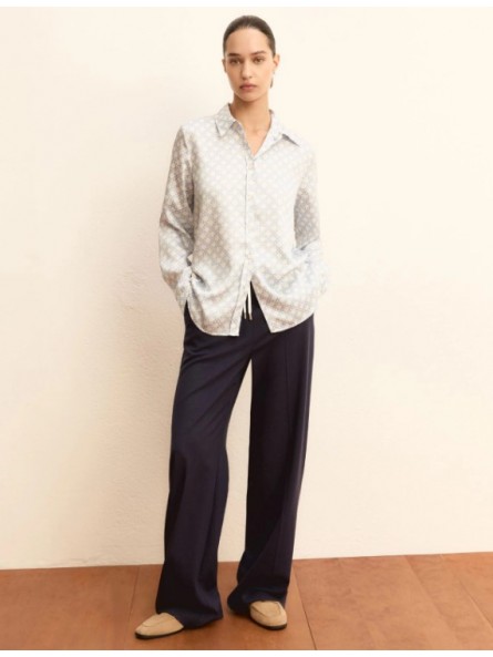 La fluidità della viscosa, il tocco brillante del lamé: questo pantalone sorprende per la ricchezza del materiale ma anche per i dettagli della costruzione, con doppio cintone in vita con dettaglio a contrasto in raso leggero.