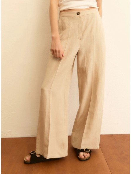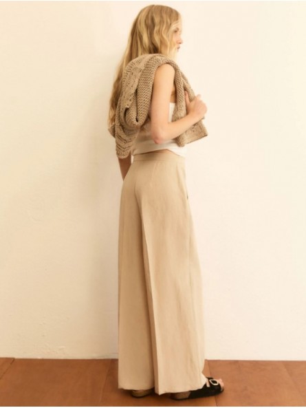 Pantalone fluido in viscosa e lino