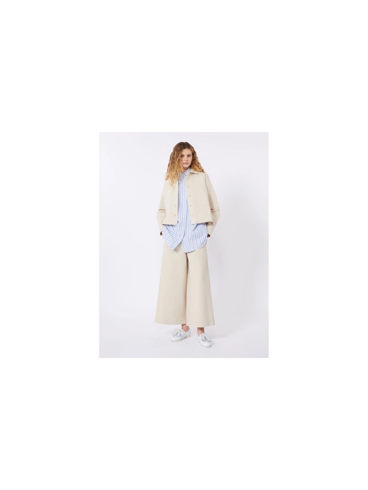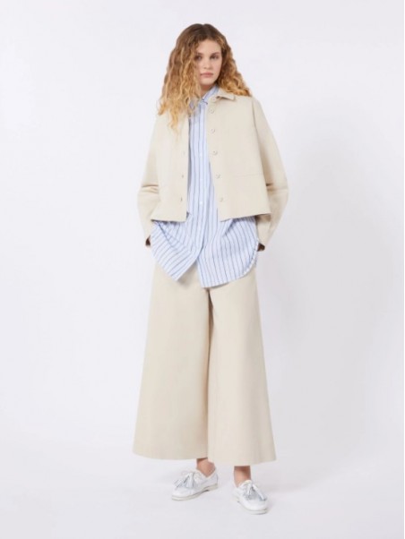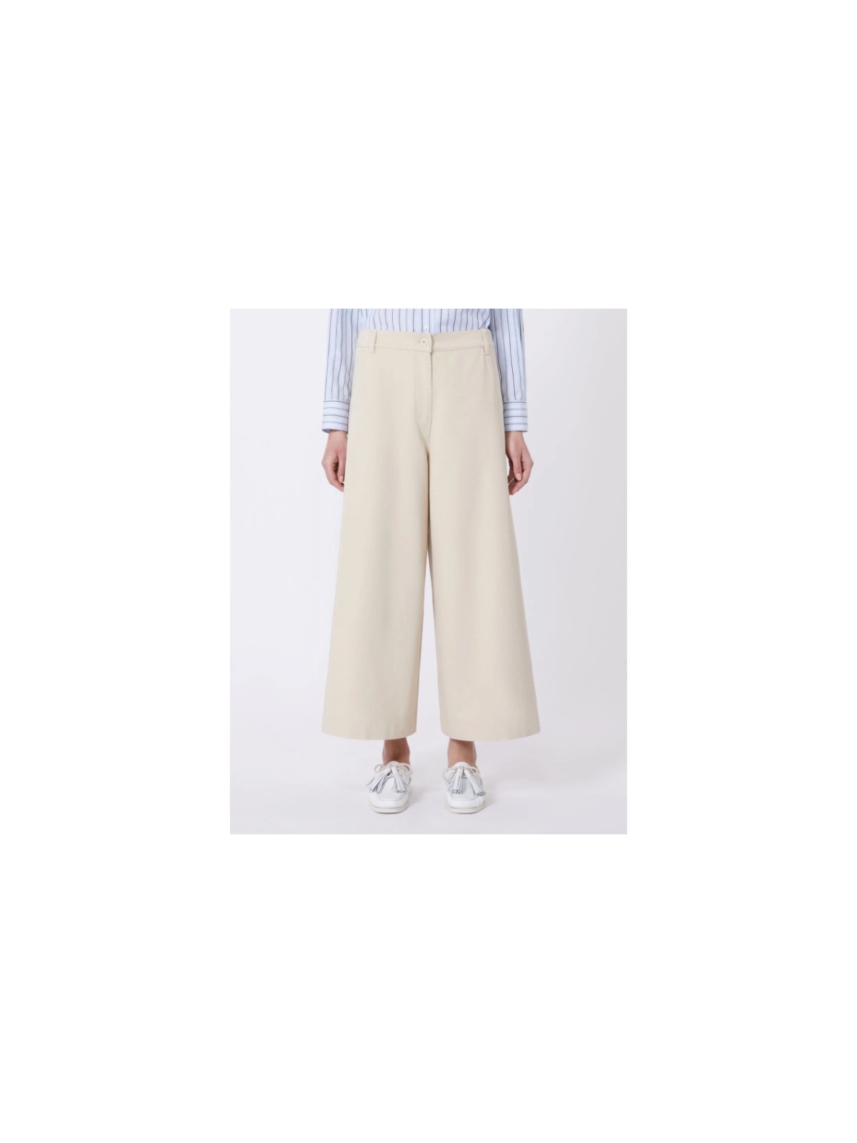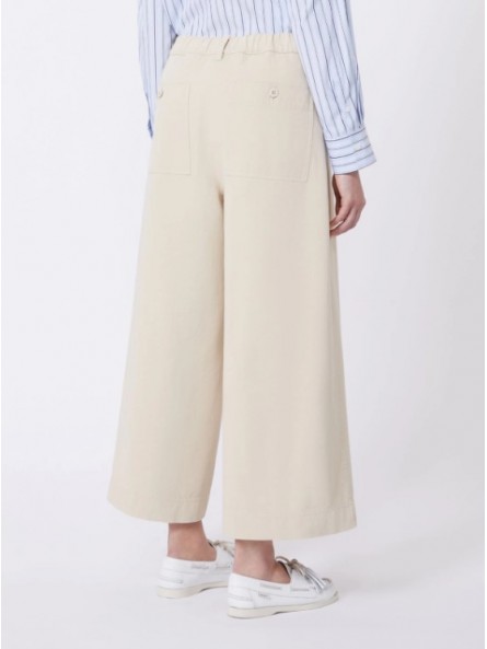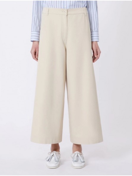 Pantalone cropped alla caviglia, caratterizzato da una silhouette wide leg.