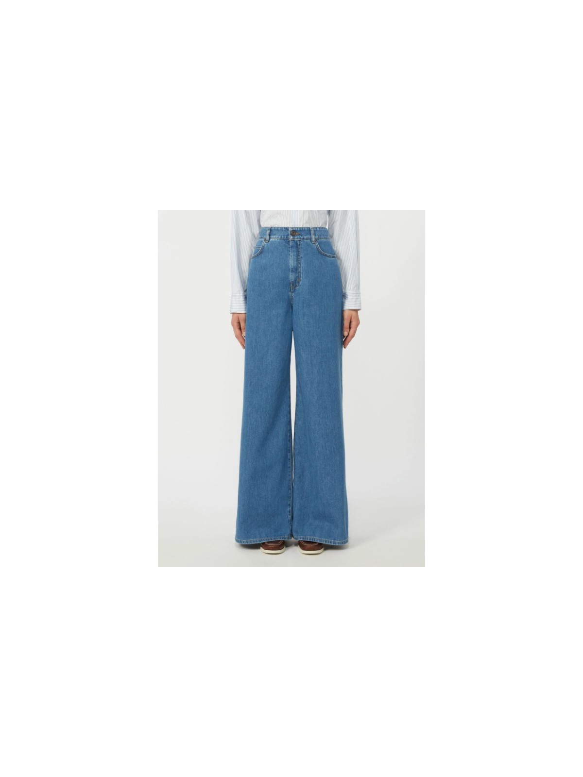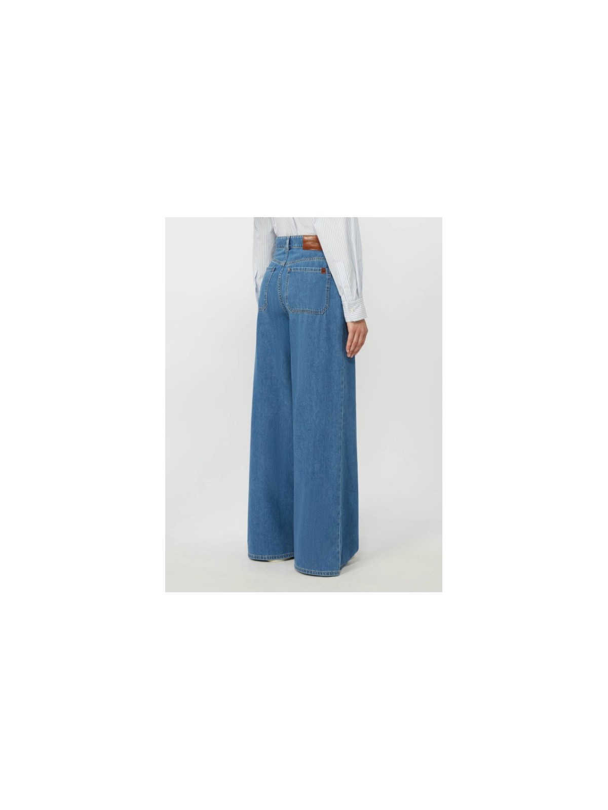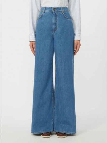 Jeans 5 tasche dalla silhouette wide leg, personalizzato da label con logo a farfalla sulla tasca posteriore destra.