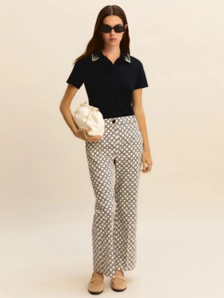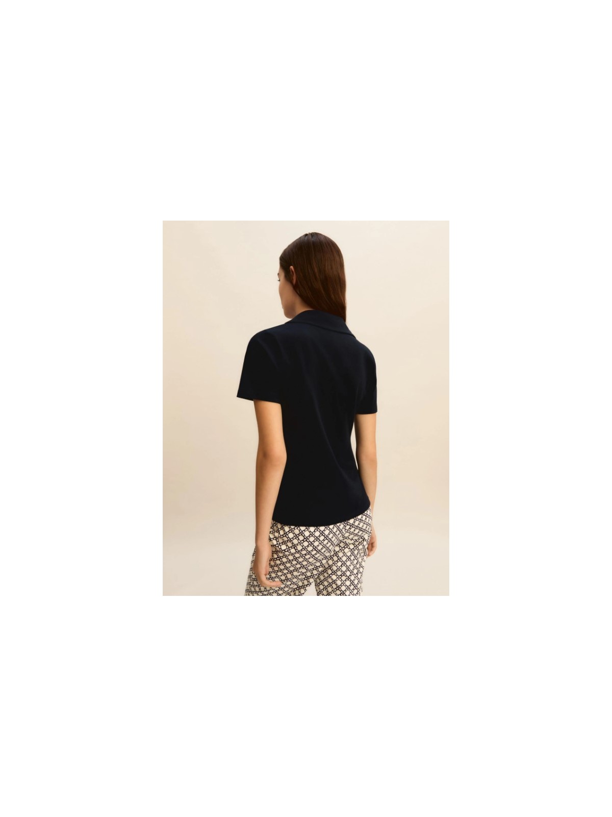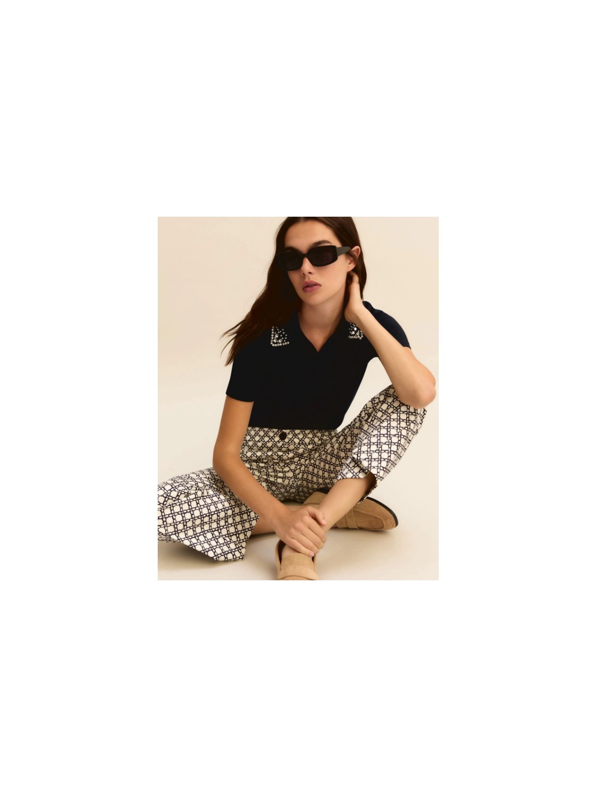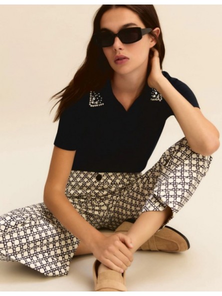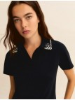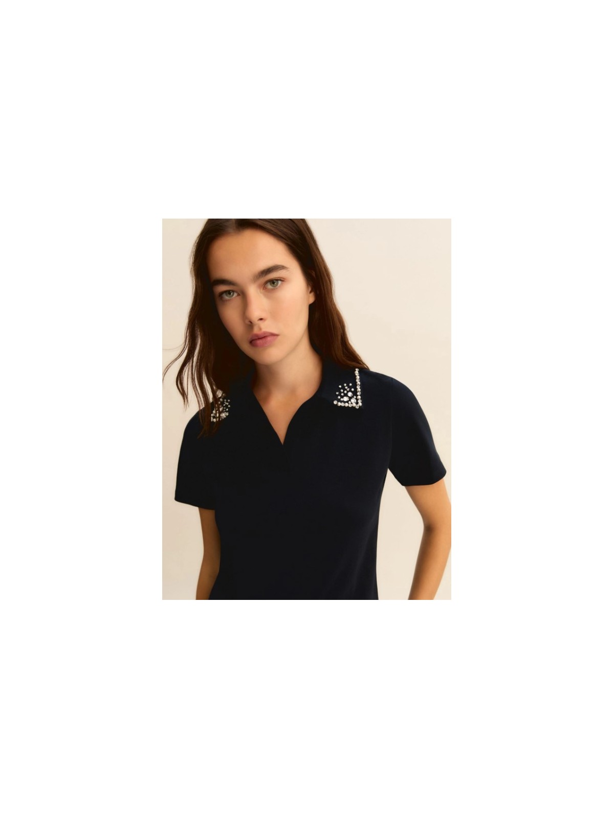 Casual nella costruzione, glamour nei dettagli: nuova polo in cotone stretch, con la classica apertura a V decorata da perle bijoux e cristalli ricamati. Un tocco di luce che rende speciale i tuoi look.