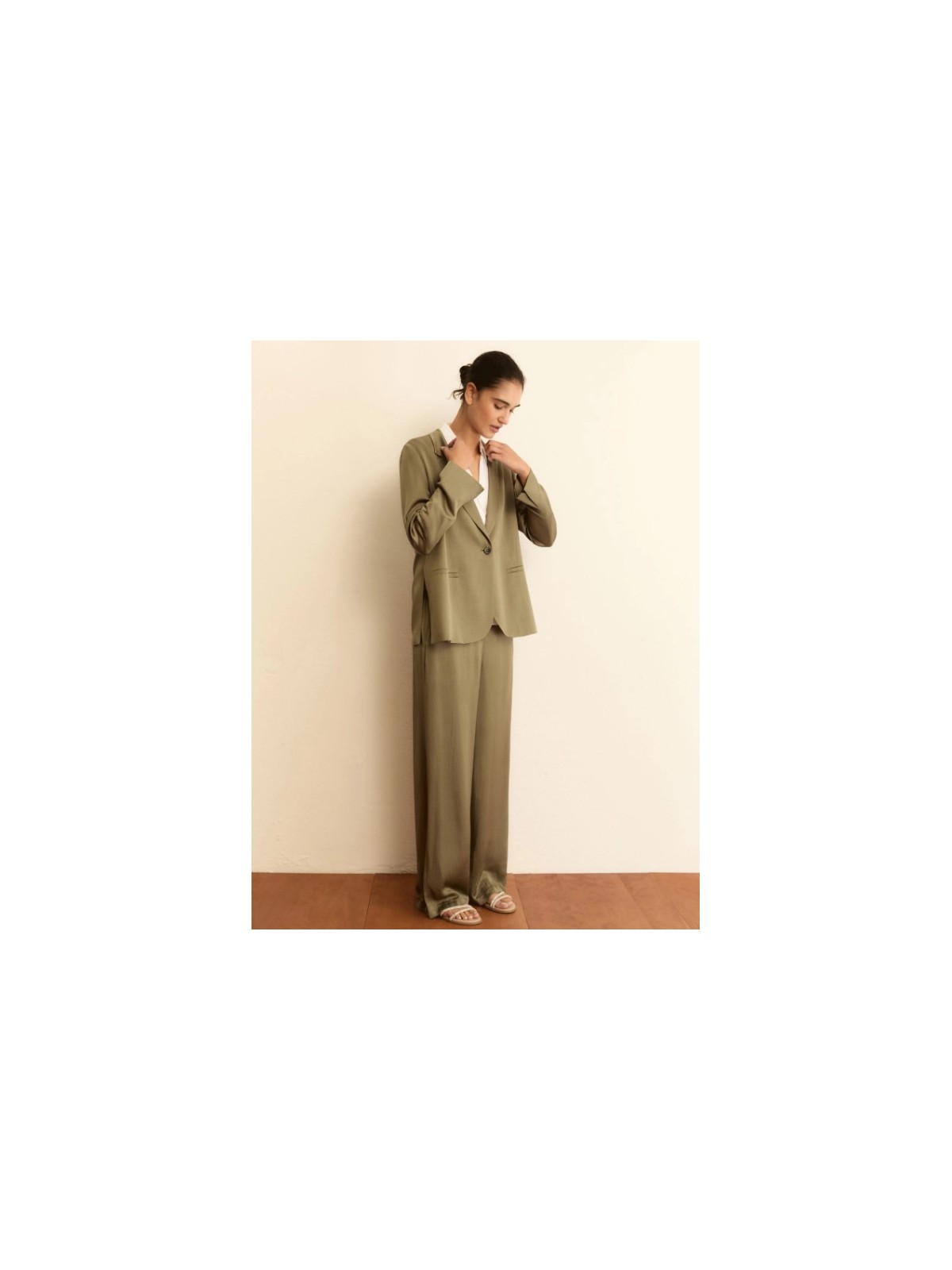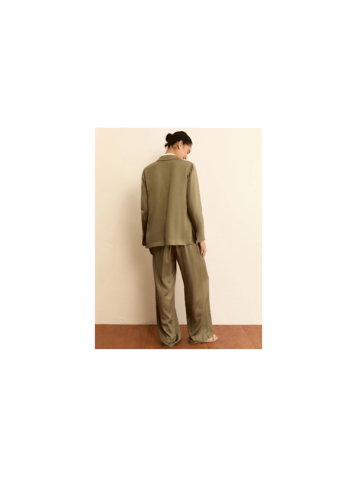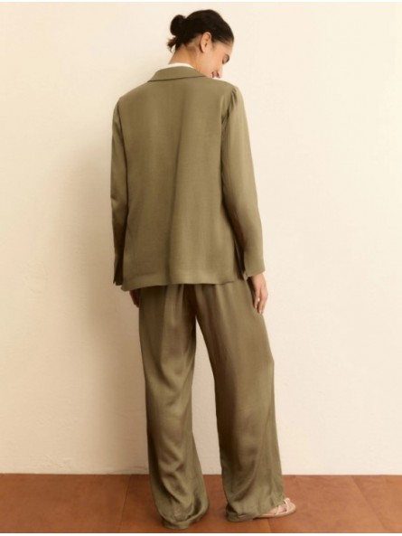 Fluido al punto da diventare quasi destrutturato, questo completo è il simbolo stesso dell'eleganza contemporanea. Con pantalone morbido ed elastico in vita per un comfort assoluto.