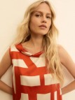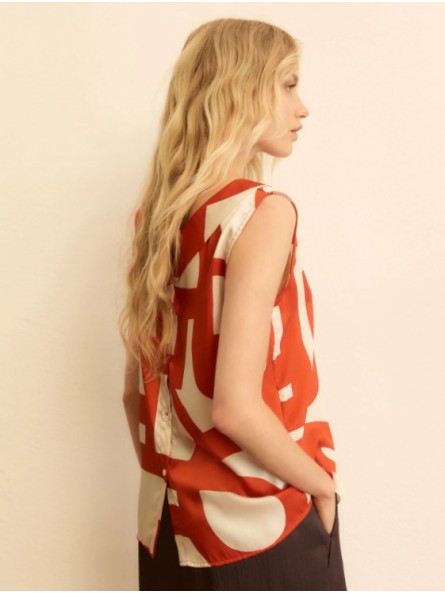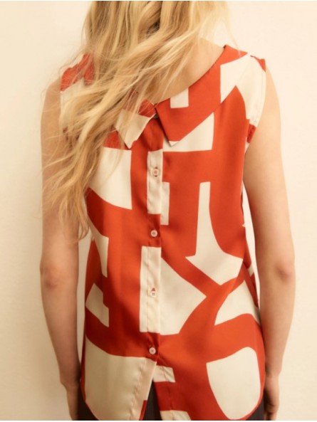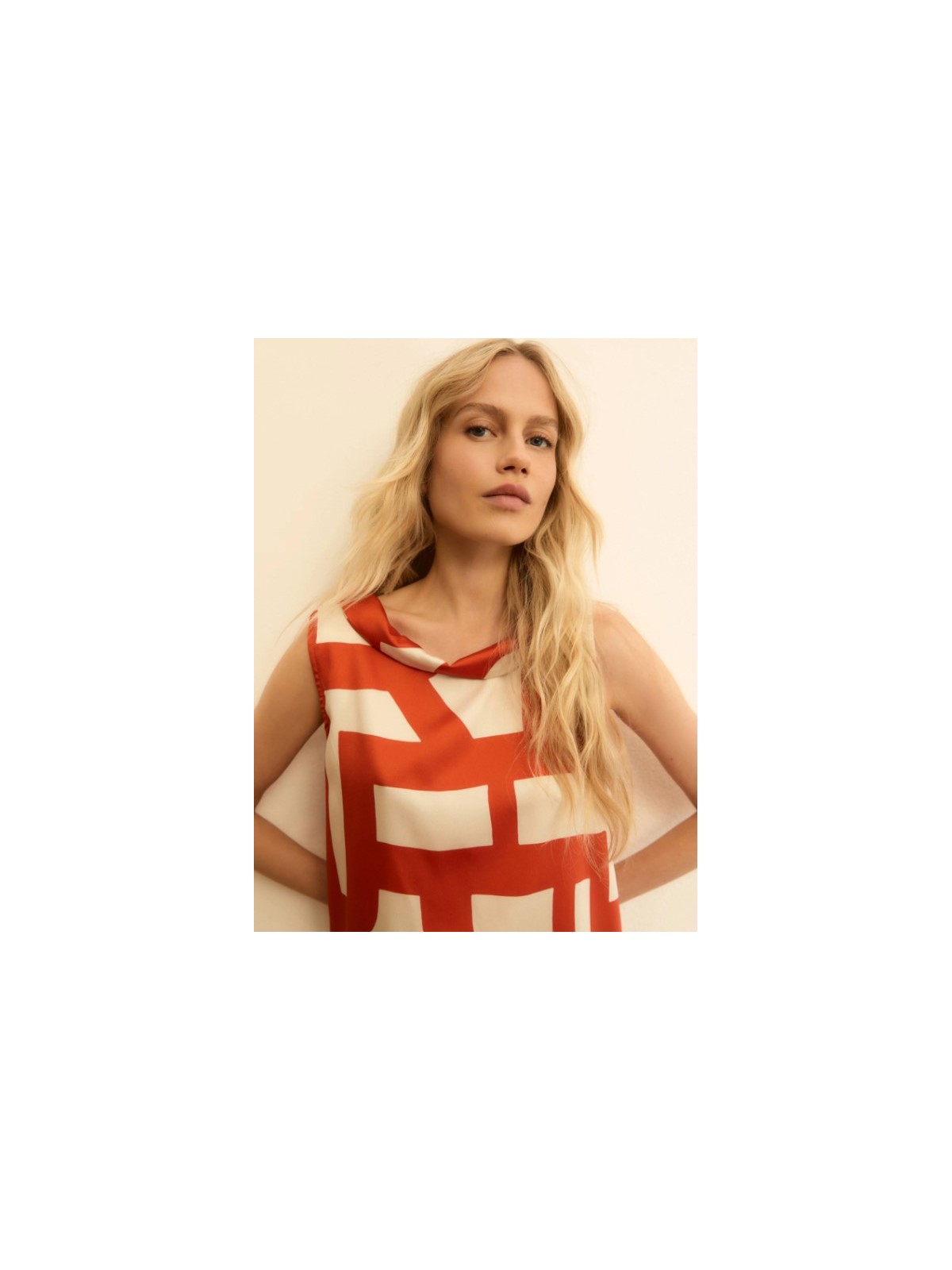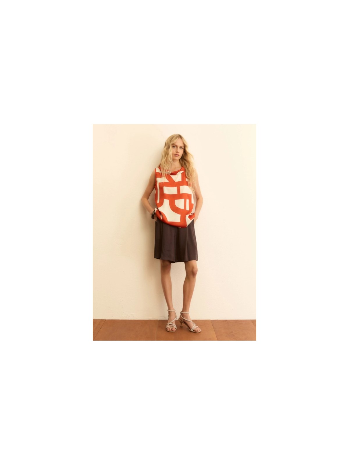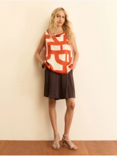Linee sofisticate e uno scollo ripiegato che crea una linea decisa: il nuovo top rivela un'eleganza sorprendente, tra il metropolitano e l'iconico. Da completare con i pantaloni coordinati.